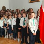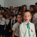 Zgodnie z zapowiedzią, w ramach akcji „Szkoła do hymnu” cała społeczność szkolna spotkała się w piątek 7.11.2025r. w holu szkoły, by wspólnie o godz. 11.11 odśpiewać „Mazurek Dąbrowskiego”.